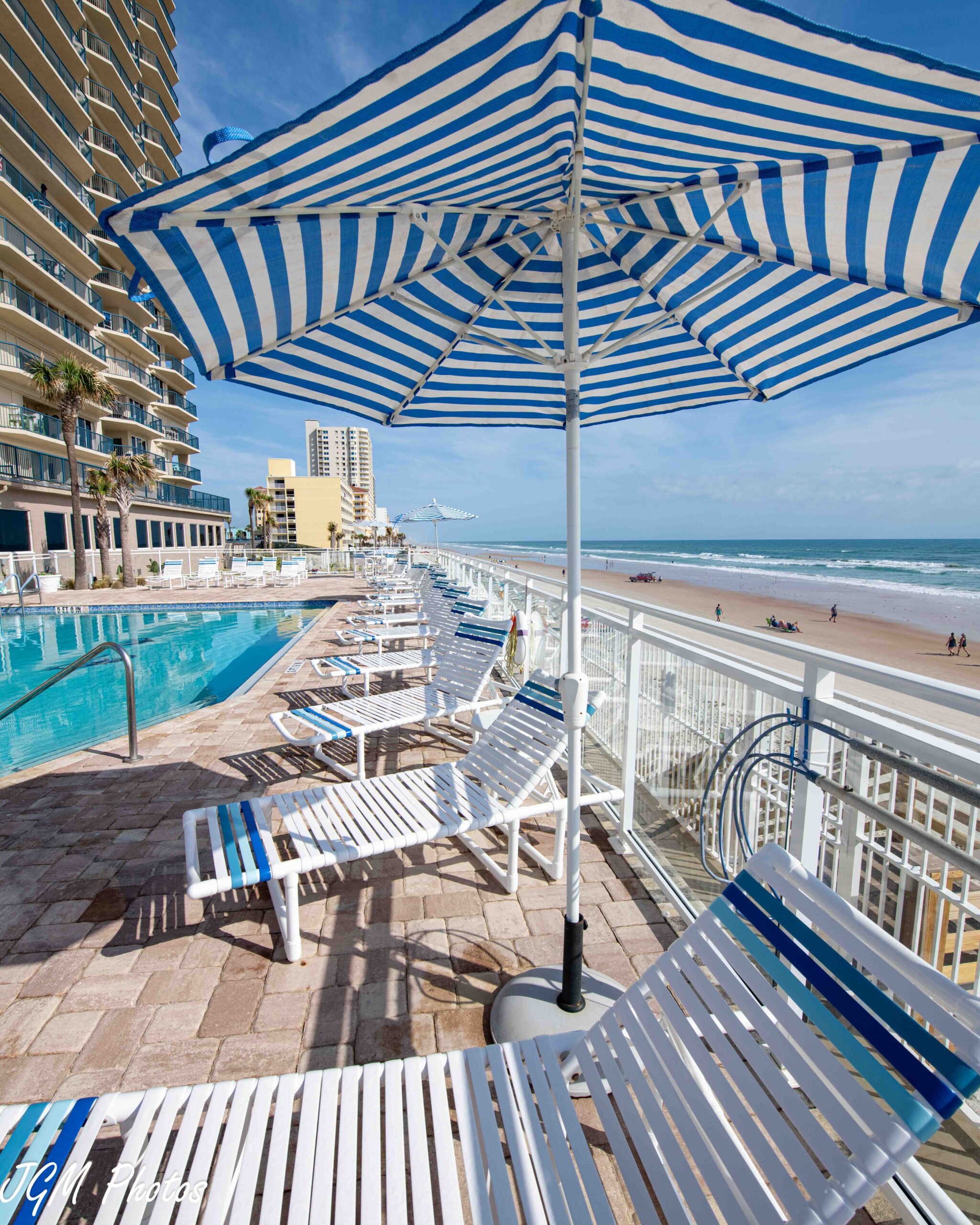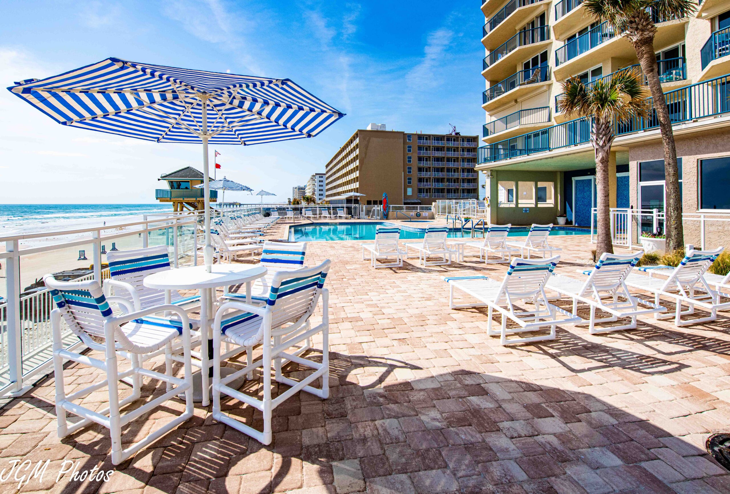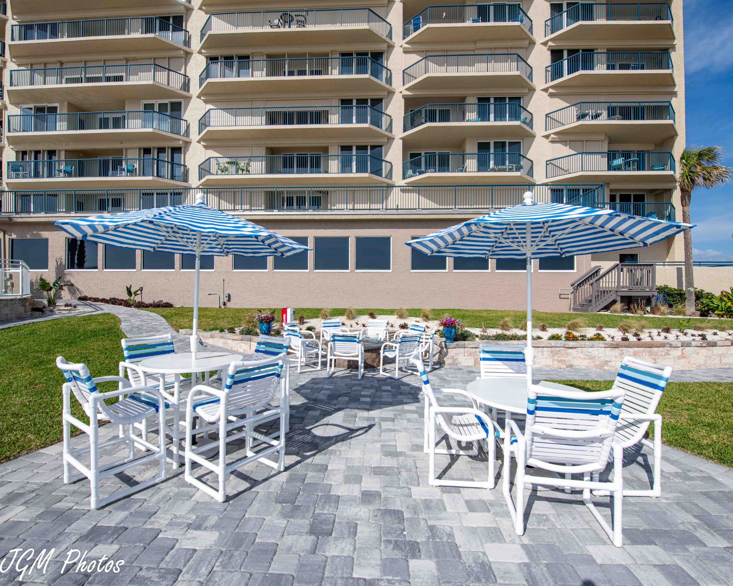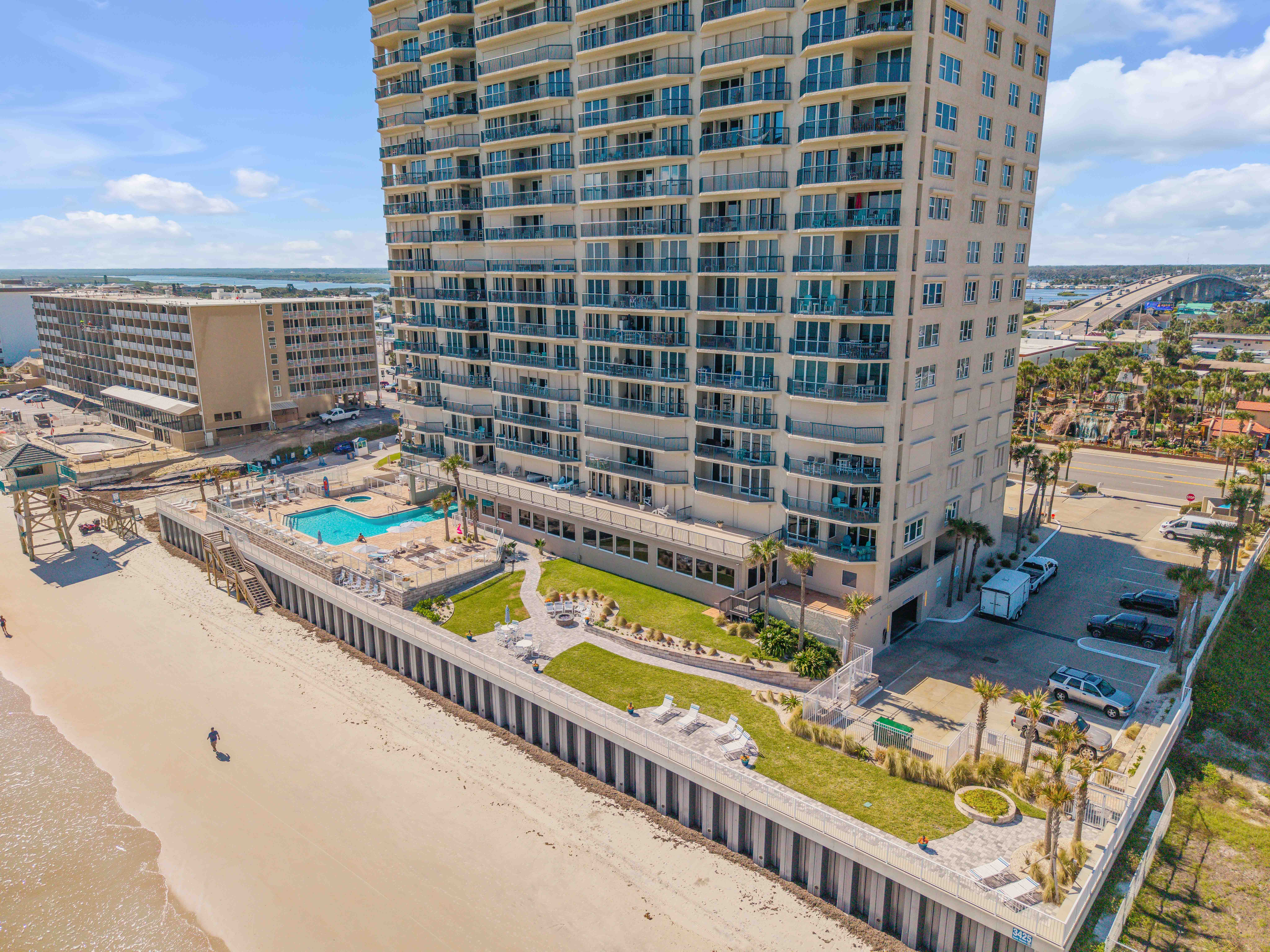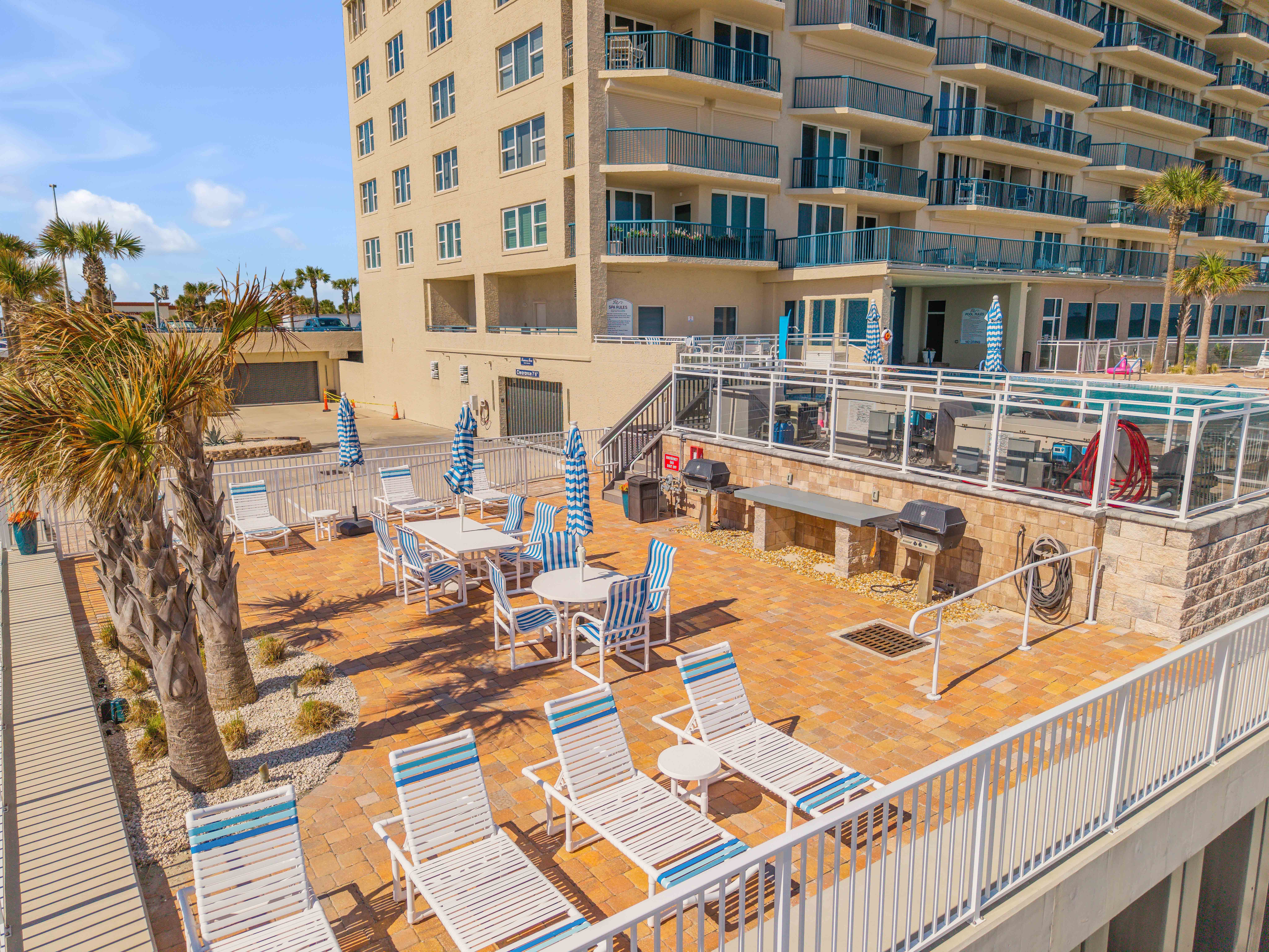 The backyard oasis at Towers Ten offers a serene escape with a private hot tub overlooking the endless Atlantic horizon. Just beyond the deck, residents enjoy direct access to the beach, blending the comfort of a relaxing spa retreat with the beauty of Florida’s coastal lifestyle. Whether soaking in the warm waters or taking in the ocean breeze, this outdoor sanctuary is the perfect place to unwind.